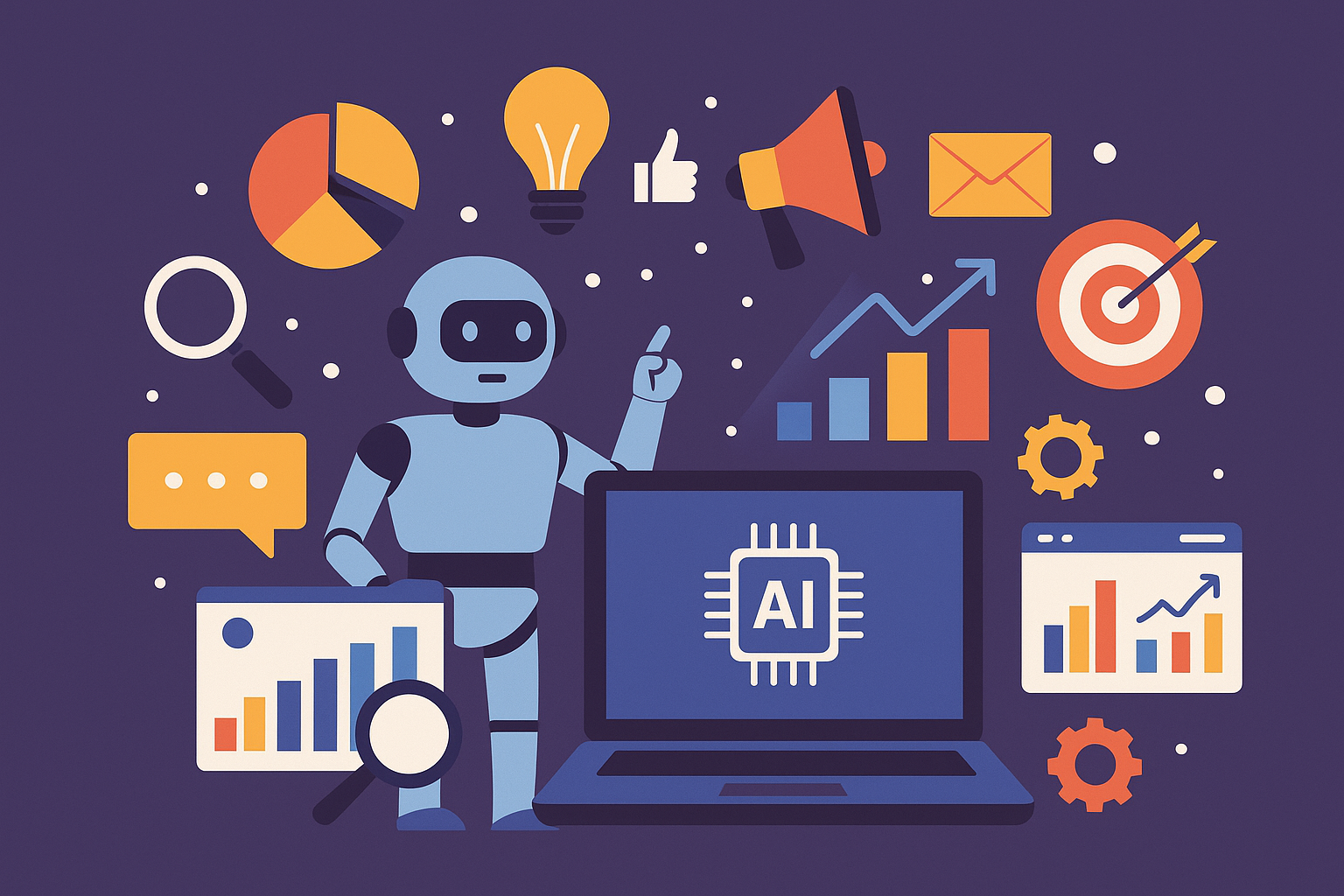 الذكاء الاصطناعي (AI) في التسويق الرقمي أو التسويق الرقمي الذكي هو استخدام تقنيات تحليل البيانات، التعلم الآلي، ومعالجة اللغة الطبيعية لفهم سلوك المستخدمين واتخاذ قرارات تسويقية دقيقة